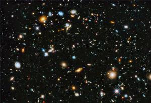 גלקסיות שהתפתחו מראשית היקום, מראה מטלסקופ החלל האבל. מקור: Wikimedia.