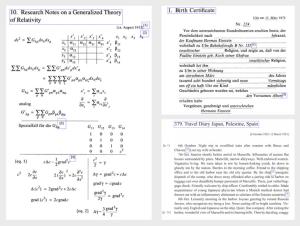 תעודת לידה, יומן מסע למזרח וחישובים מתמטיים של תורת היחסות. מתוך The Collected Papers of Albert Einstein