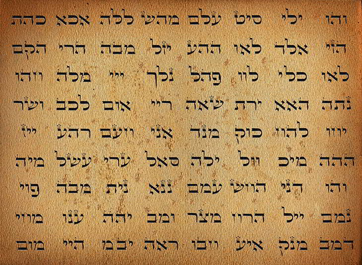 לפי תורת הקבלה, הסודות להבנת היקום מוצפנים באותיות התורה. כל 72 השמות הם צירופים המוצפנים ב-3 פסוקים בספר שמות, המתארים את סיפור קריעת ים סוף. הנה כמה דוגמאות נבחרות לשמות האלוהות והאנרגיות שהן מייצגות: