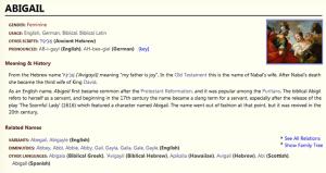 מקור ומשמעות השם "אביגיל" צילום מסך: Behind the Name.