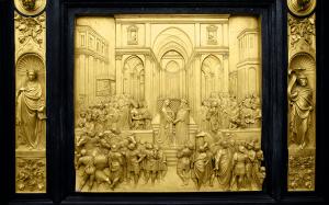 תבליט של מלכת שבא והמלך שלמה, החכם באדם. הדואומו, פירנצה.
