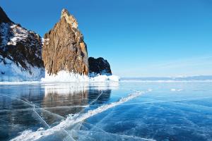 נוף טיפוסי בימת באיקל. היופי אינו מסגיר את תנאי הקיצון האופייניים לסיביר.